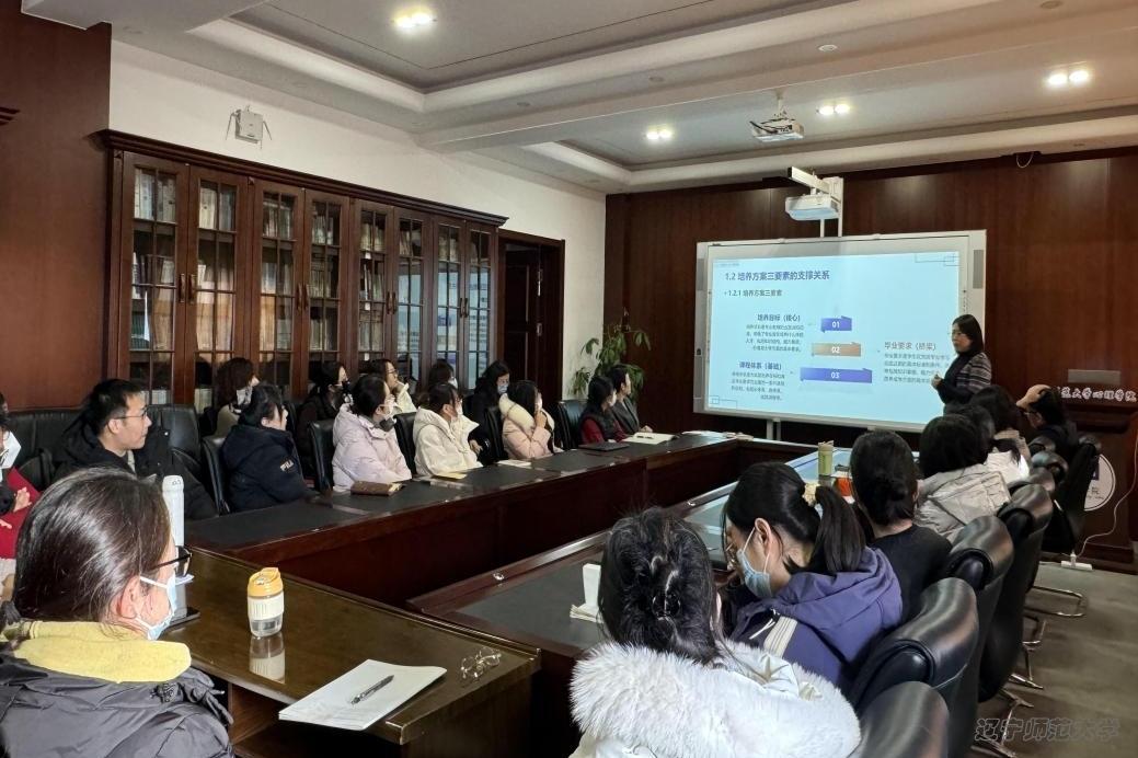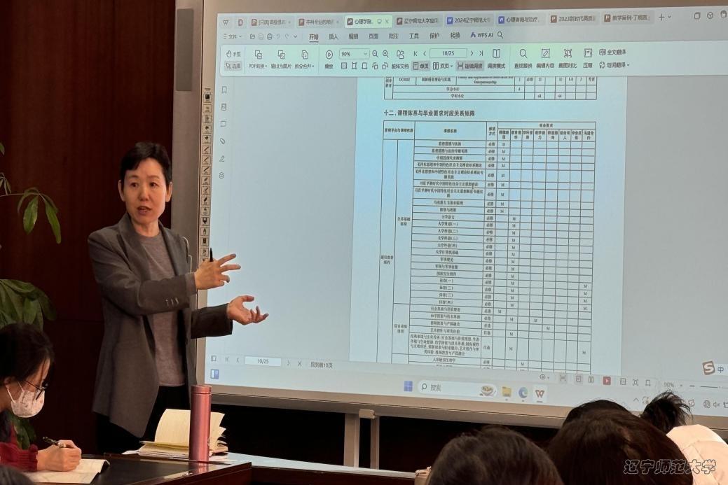 活动伊始,应用心理学系主任、副教授高雯老师以“本科专业的培养目标、毕业要求和课程体系建设”为题,深入解读了师范专业认证工作的背景与历程,详细阐述了培养方案三要素(培养目标、毕业要求和课程体系)的内涵、来源及相互关系。高老师结合《心理咨询与治疗》课程实例,清晰展示了课程目标与毕业要求、培养目标的对应关系,并就当前需要整改的问题向全体教师征集意见和建议。孙岩副院长对高老师的汇报给予了高度评价,并强调了每门课程教学大纲修订的重要性,鼓励教师深入思考课程目标、教学内容、教学方法和考核方法,确保它们与毕业要求和课程目标紧密相关。