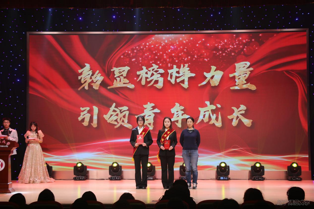 刘岩教授为自律自强青年榜样马茜颖、王悦宣读颁奖词并颁奖。