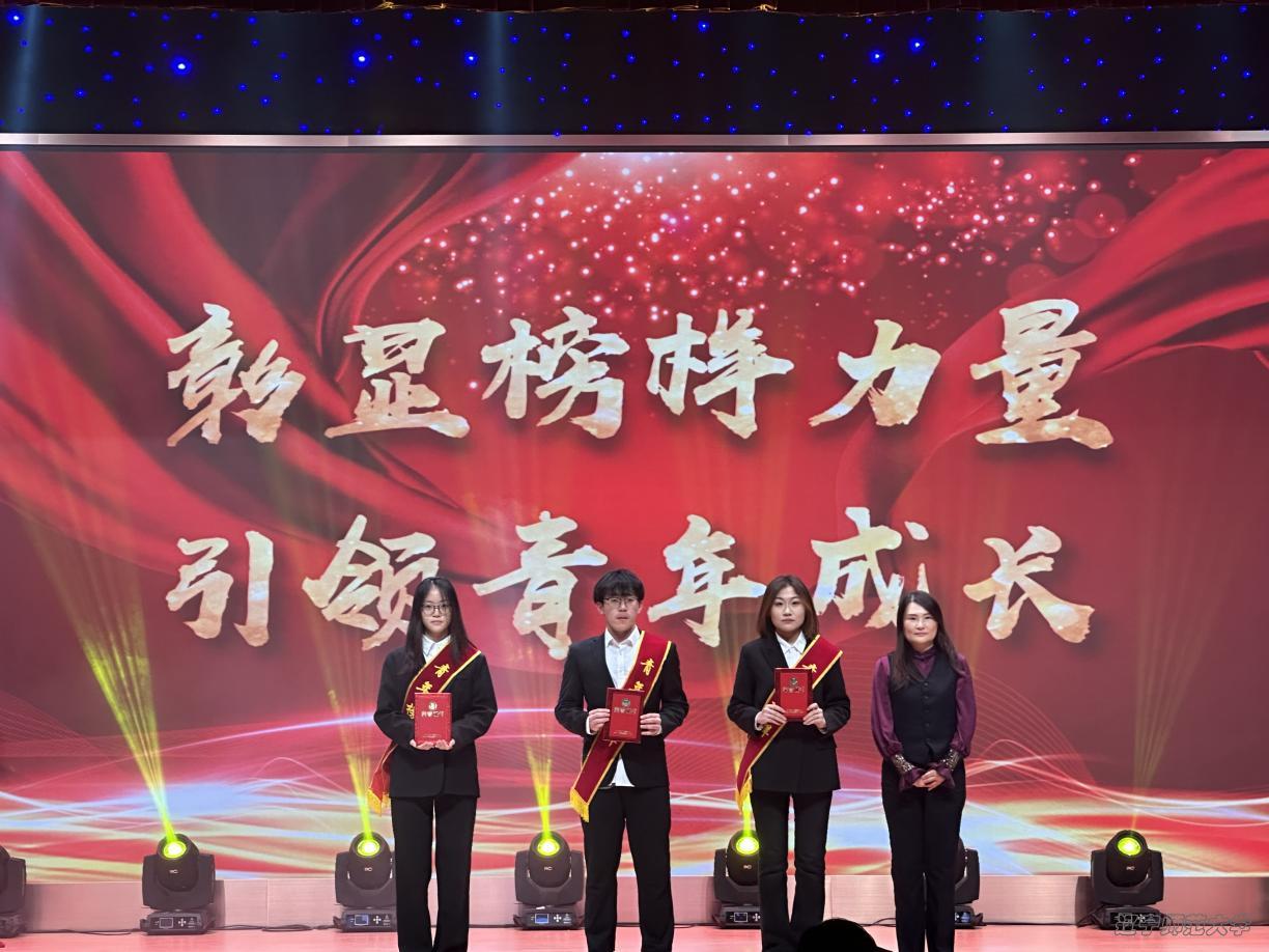 随后,教师代表崔倩老师为刻苦学习青年榜样李永强、盖茹、张艺涵、戴凯淇宣读颁奖词并颁奖;院长胡金生教授为创新实践青年榜样盖兴邦、张煜杭、谢傲伟宣读颁奖词并颁奖。