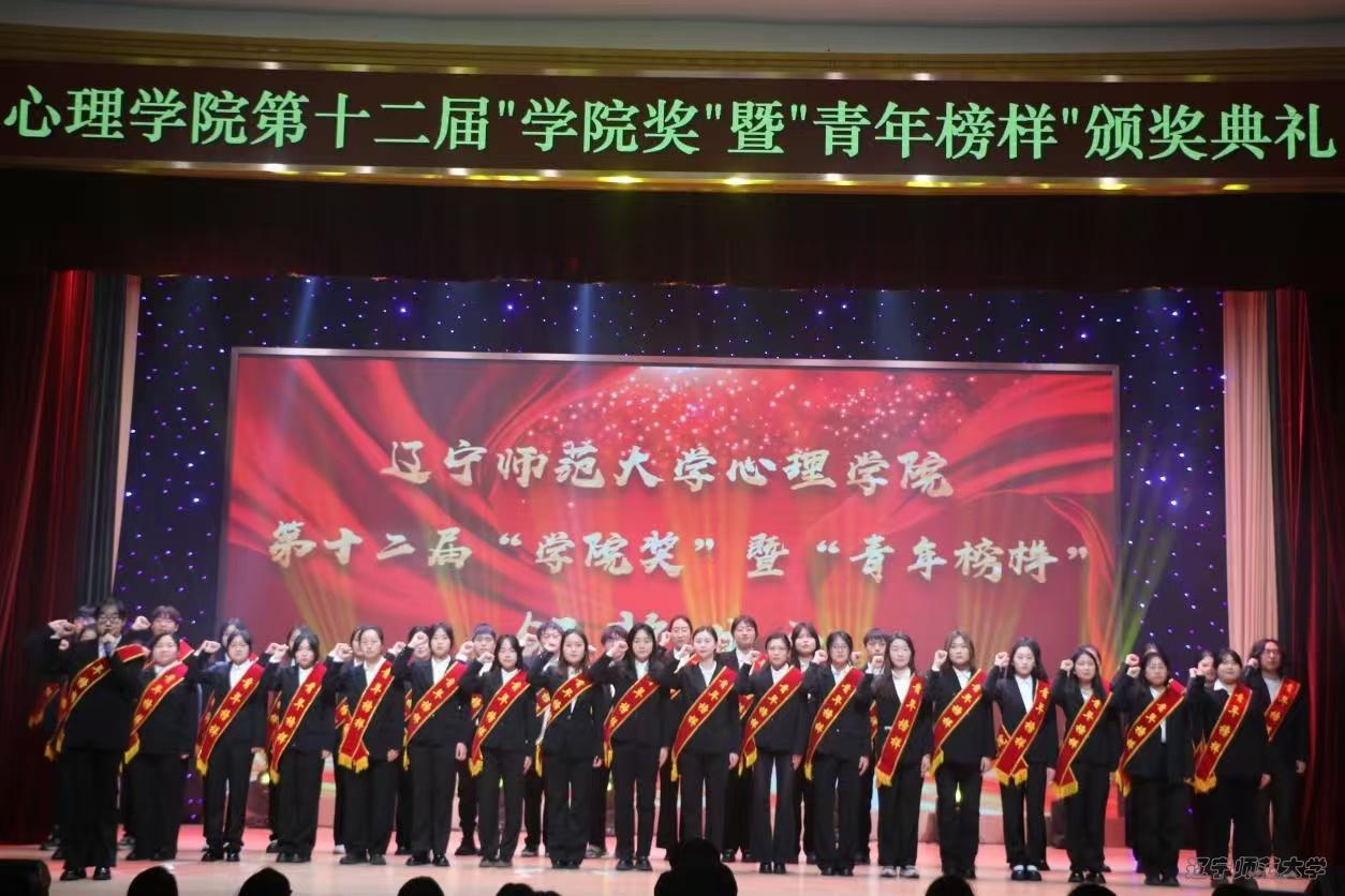 榜样引领时代,凝聚磅礴力量,砥砺奋进前行。2024年12月6日14:00,心理学院第十二届“学院奖”暨“青年榜样”颁奖典礼于辽宁师范大学礼堂隆重举行,心理学院党政领导、200名师生代表参加了本次活动。本次颁奖典礼由刘宇硕、付薏霖、于清晨、王梓旭、李羽桐主持。