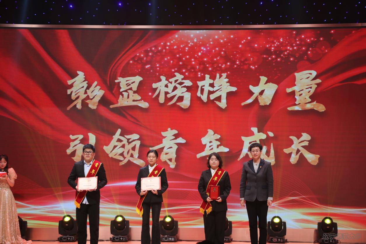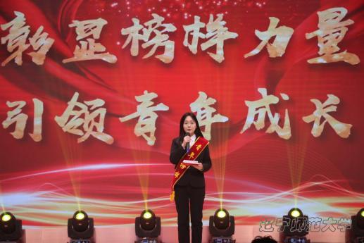 应用心理学系副主任丁晓茜副教授为文体双馨青年榜样刘雨辰、王兆方、周长远、刘天琦宣读颁奖词并颁奖。