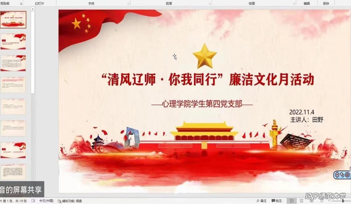 为加强校园廉洁文化建设,营造风清气正的育人环境,根据辽宁师范大学第二届“清风辽师·你我同行”廉洁文化月活动的通知,心理学院特举办“清风辽师·你我同行”廉洁家风教育系列活动。