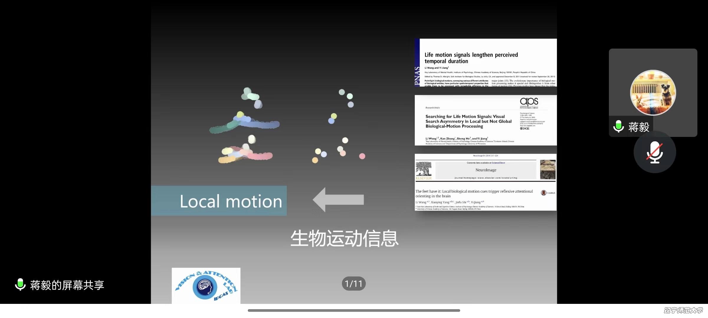 随后,蒋毅研究员围绕《生物社会信息的视觉加工研究》的核心本质,从生物社会信息的加工特异性、社会性注意的机制和社会互动信息的知觉表征方面依次展开,进行了深入浅出的讲解。此外,蒋毅研究员也对未来跨物种方面的研究进行了积极展望。