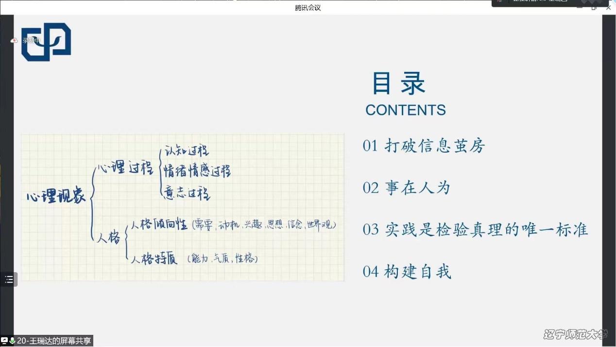 最后,辅导员田野老师对本次大会进行总结。他肯定了两位学姐作的精彩分享,要求新生们转变假期模式,以饱满的精神面貌投入到课堂中。他希望同学们步入大学后学会科学认知,关心爱人,强健身心,加强学业规划和自我管理,顺利度过大学适应期并收获成功。此外,田老师对即将开展的线上运动打卡以及晚自习工作作了说明与部署。