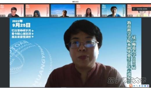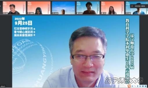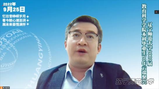 2022年9月25日13:30-18:30,教育学院2002届本科毕业生成功在线举办毕业20周年“忆往昔峥嵘岁月,看今朝心潮澎湃,展未来豪情满怀”主题云端聚会。参加聚会的有教育学院和心理学院的老领导和老教师代表、现任领导和教师代表、1996级学长代表以及1998级教育学、心理学、学前教育、特殊教育四个专业的毕业生。本次聚会由毕业生代表衣新发(现就职于陕西师范大学,线下在北京分会场)和杨华维(现就职于大连电视台,线下在大连主会场)联合主持。