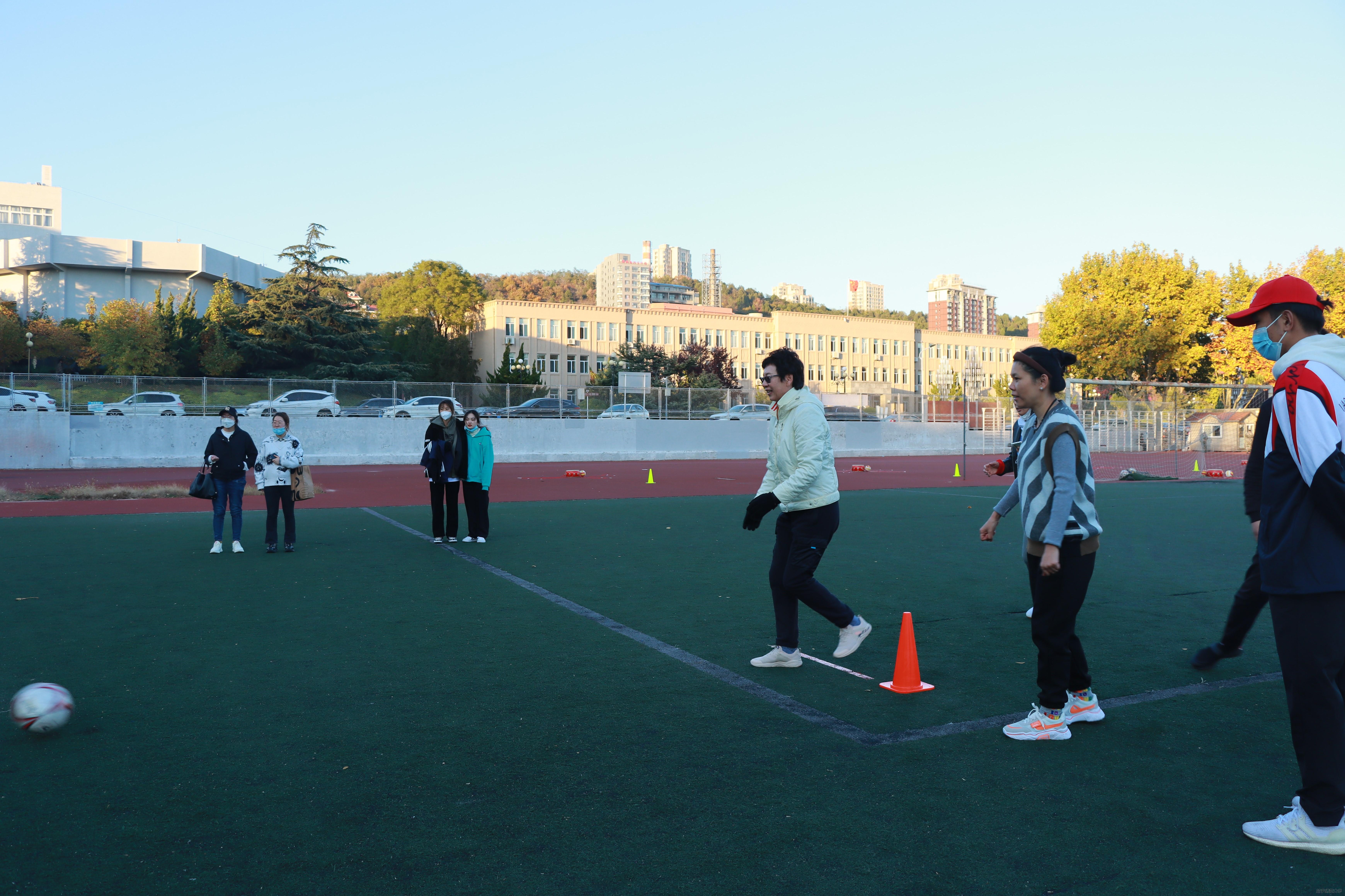 此次趣味运动会中共设置了五个接力项目,包括“风火轮”“集体跳大绳”“击鼓颠球”“足球射门”和“旱地龙舟”,每一个比赛项目不仅是智慧和体力的角逐,更是团结和协作的完美比拼,参赛教师昂扬向上、奋发有为,充分展示了学院的精神面貌和团队风采。