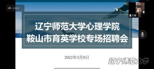 2022年3月9日上午10点30分,我院举办鞍山市育英学校云端专场招聘会。鞍山市育英学校董事长张博、苏柳旭老师出席本次招聘会。招聘会由2018级辅导员田野主持。