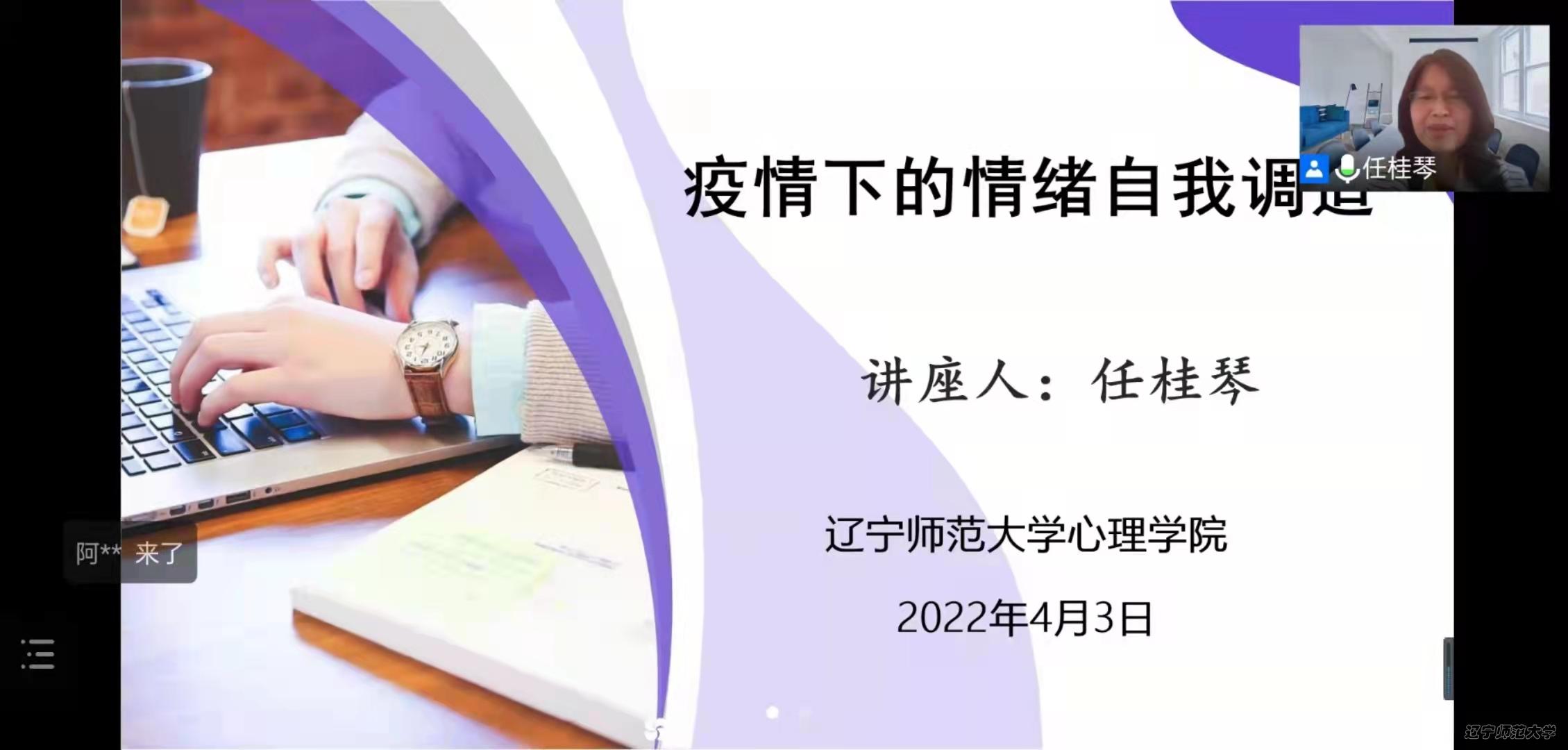 为贯彻落实和加强疫情防控下大学生心理健康工作,2022年4月3日14:00,我院任桂琴教授作为主讲人,面向全校学生开展主题为“疫情下的情绪自我调适”的讲座。