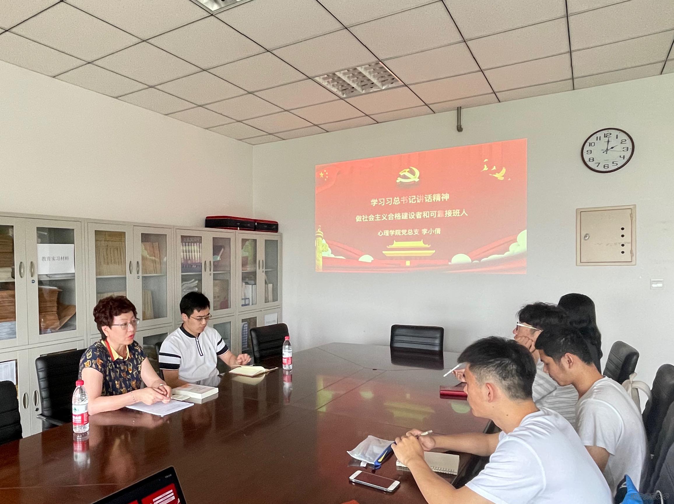 2021年6月29日下午14:00,心理学院党总支书记李小倩为研究生党员、学生干部上了题为“学习习近平总书记讲话精神,做社会主义合格建设者和可靠接班人”的主题党课。