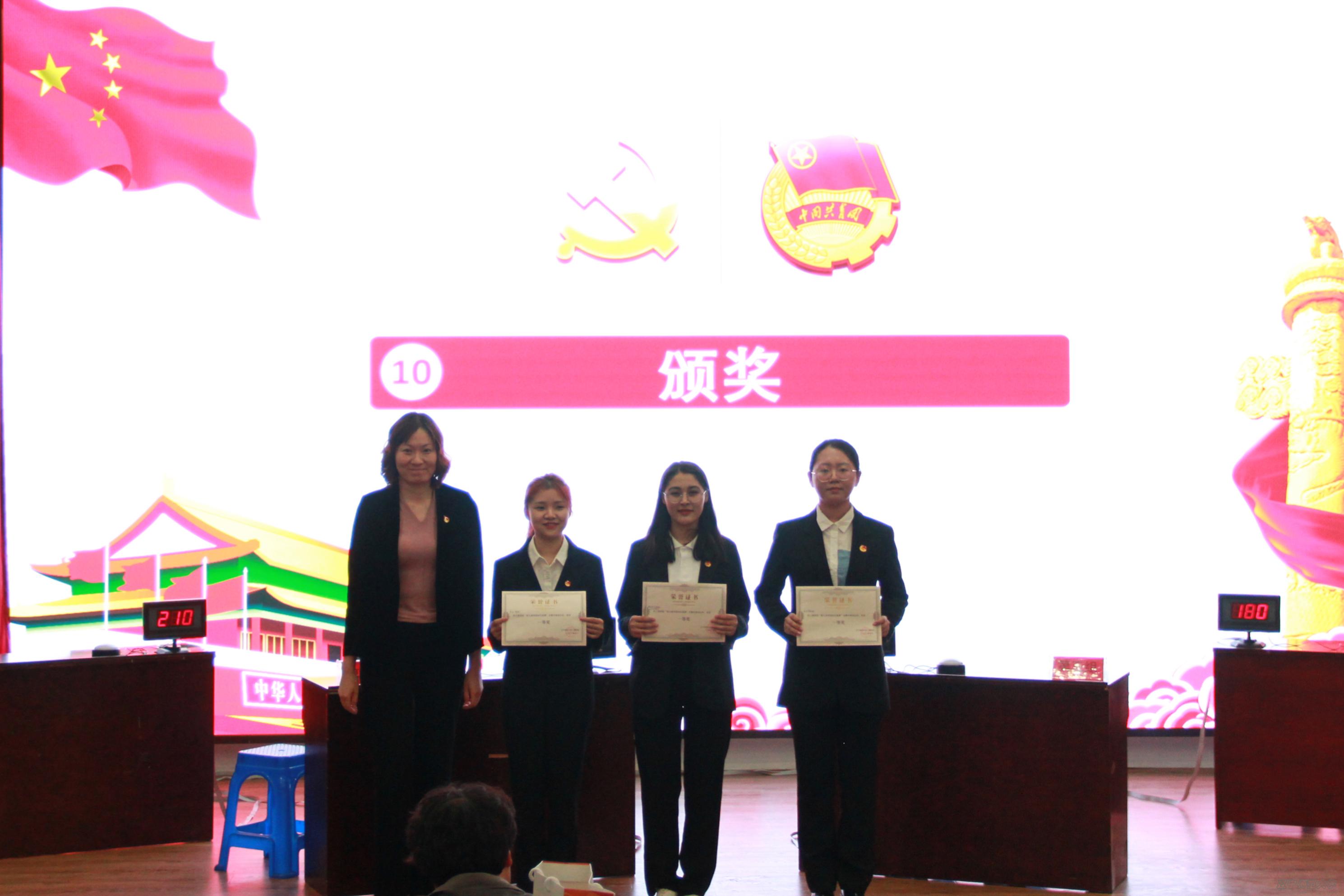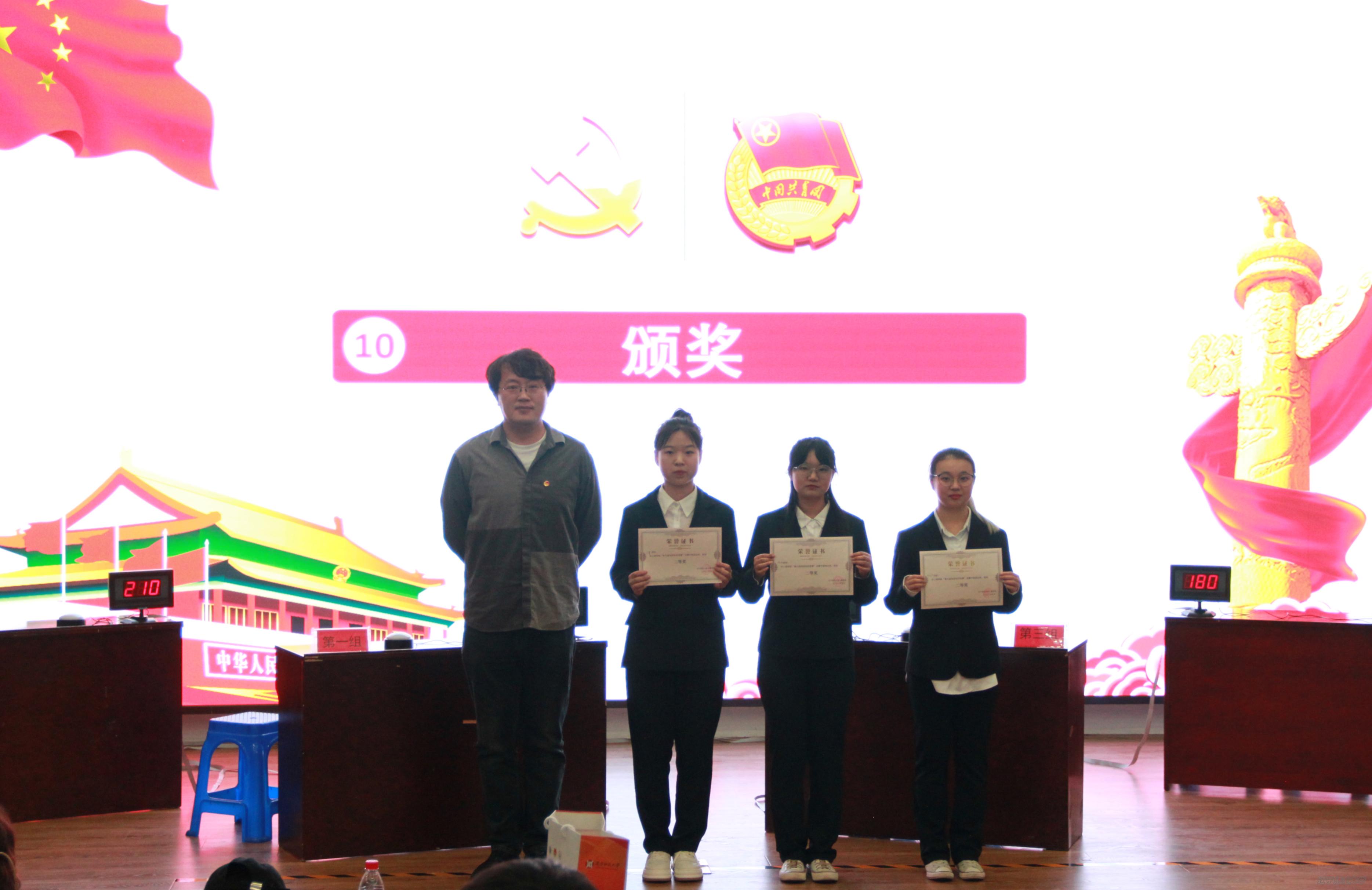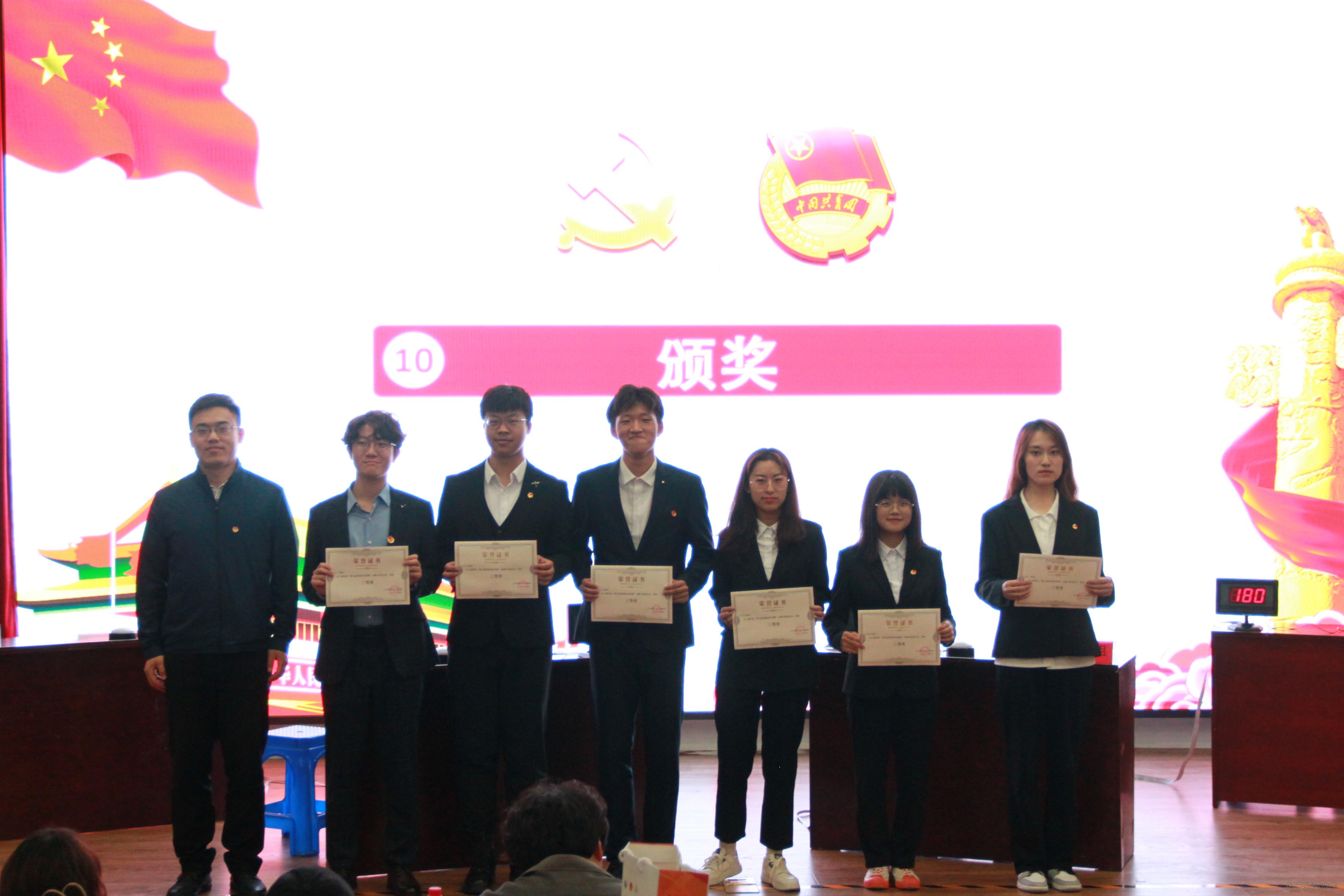 (栗庆阳老师为获得三等奖的团支部颁奖)