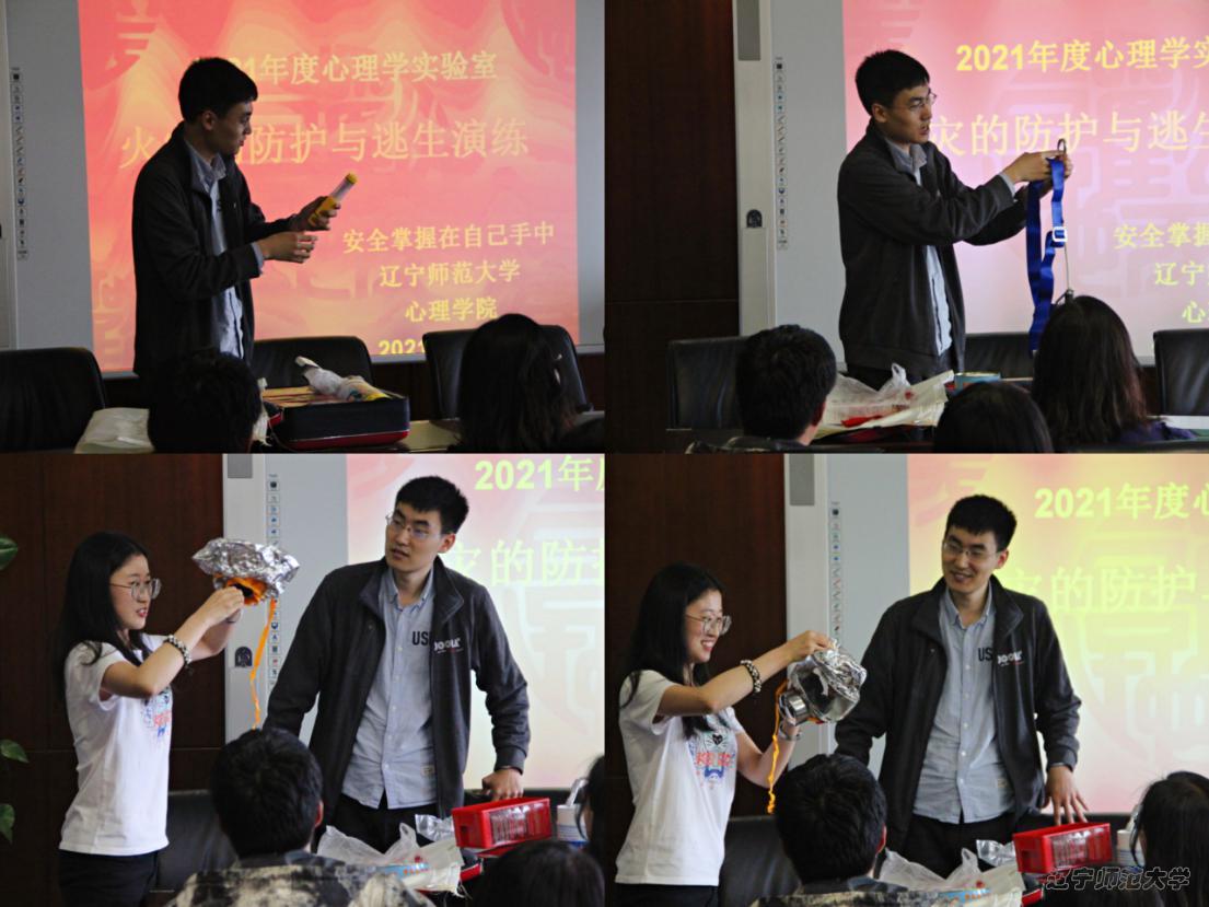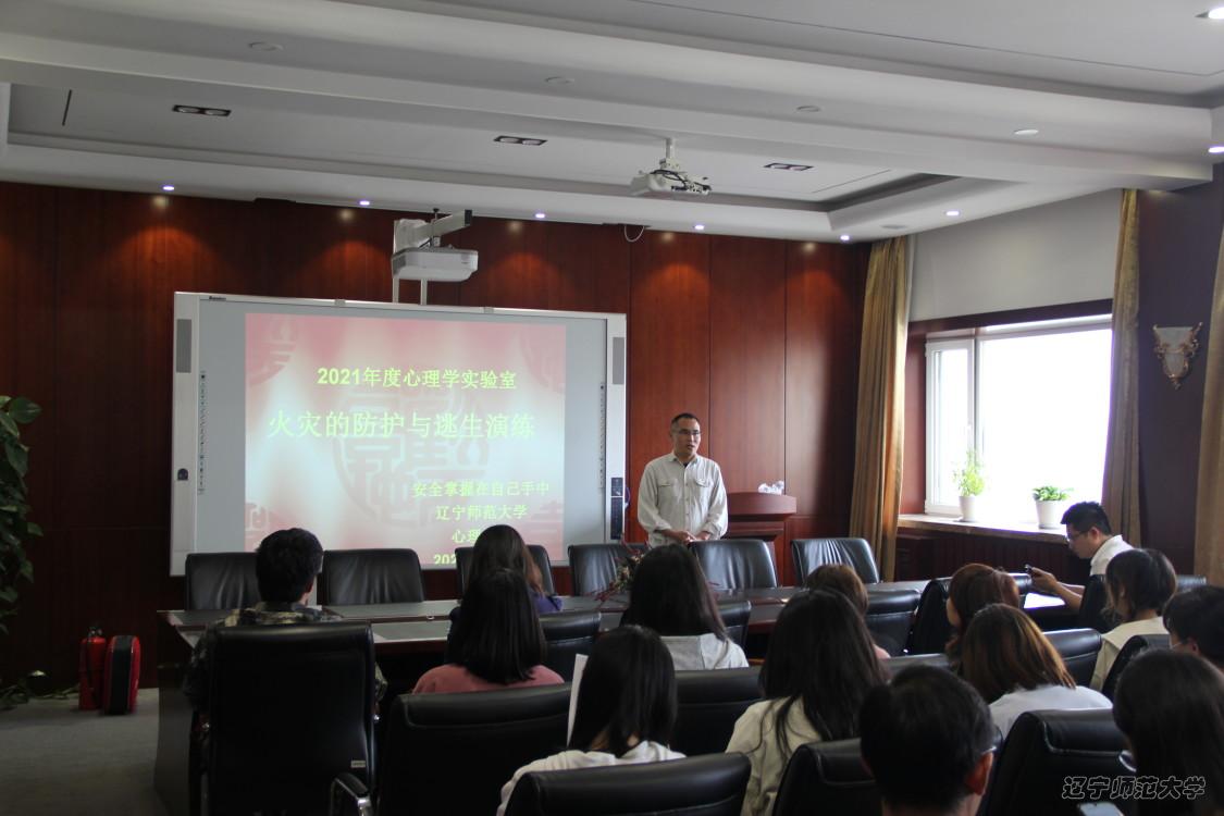 2021年6月1日下午,心理学院实验室主任、副院长蒋重清教授、李亚红教授、马锦飞副教授和各课题组及实验室研究生在实验中心8楼会议室举办心理学实验室火灾的防护与逃生演练。