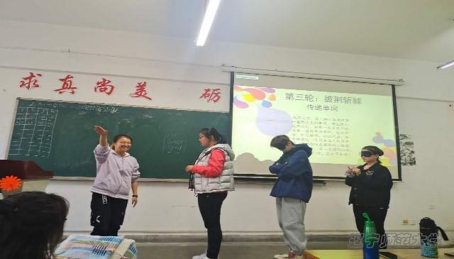 第二轮:乘风破浪。这是一场记忆风暴,考验选手们的临场记忆能力,在短暂的记忆后,由每小组派代表上台限时写作,同学们在黑板上奋笔疾书,经过激烈的角逐,最终第一小组成员获得本环节最高分。