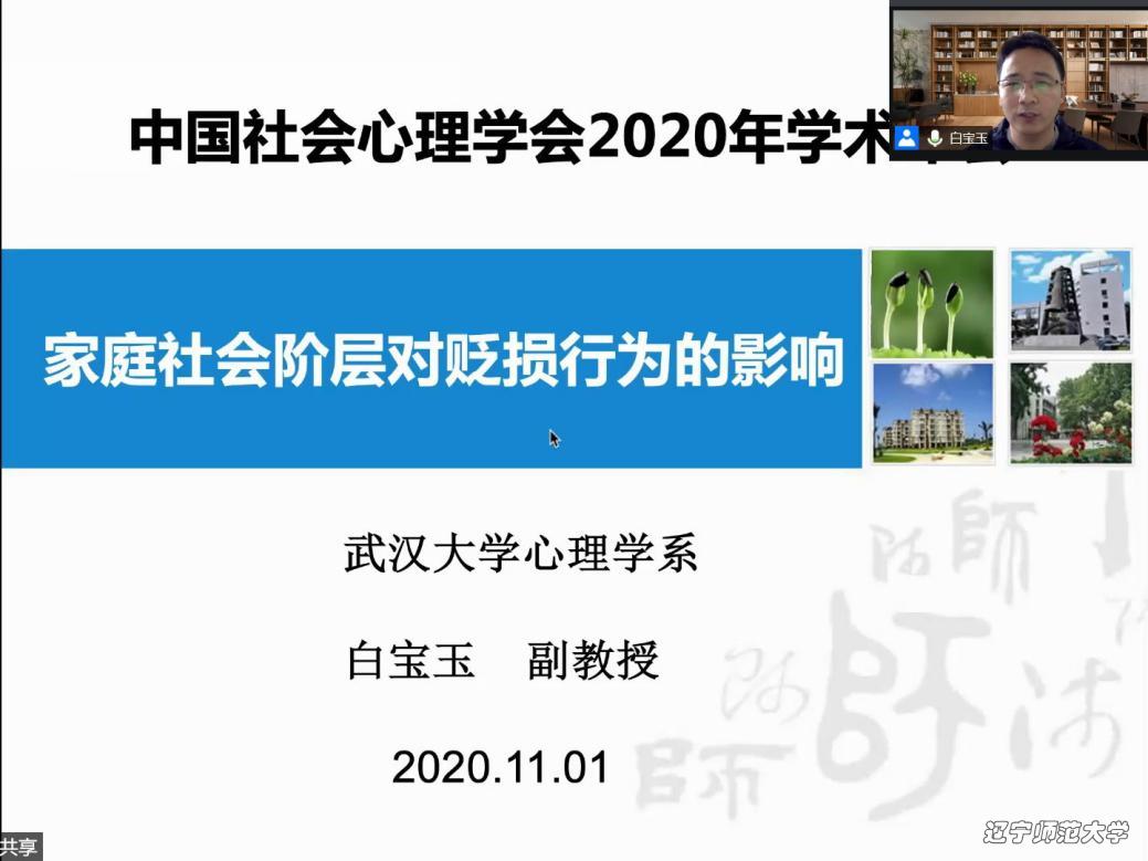 最后一位报告人是来自武汉大学哲学院心理学系白宝玉副教授。他的报告题目为《家庭社会阶层对贬损行为的影响》。该报告首先提出公正世界信念假设,接着通过三个量表对部分学生及就业人士进行测查,得到社会阶层、贬损行为、公正世界信念两两之间显著正相关的结果。基于此得出结论:公正世界信念在社会阶层与贬损行为之间起部分中介作用。