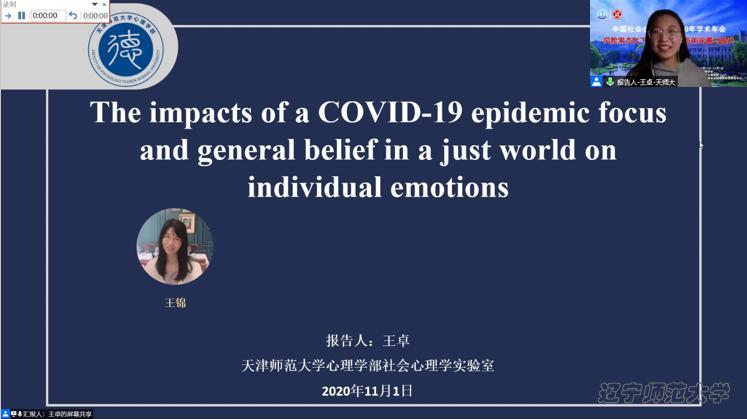 天津师范大学心理学部学者王卓代表其团队做了论坛第一个报告。她的研究为以往疫情关注与个体情绪的相关研究提供了因果解释,同时拓展了一般公正世界信念对个体情绪的影响范围:在面对疫情等重大社会灾难时,一般公正世界信念仍然能够保护个体情绪。研究启示我们要正确认识疫情,控制有关疫情信息的摄入量,避免疫情信息过载带来的替代性创伤。