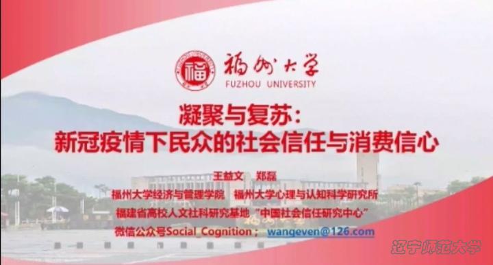 2020年11月1日15:40-16:10,由福州大学心理学所长、省高校基地“中国社会信任研究中心”主任、博士生导师王益文教授带来了《凝聚与复苏:新冠疫情下民众的社会信任与消费信心》的专题报告。