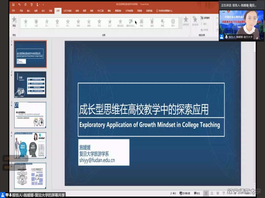 最后,复旦大学旅游学系施媛媛教授结合对成长心态和固定心态的研究,提出将成长思维运用到高校教学中,并体现具体的培养方案中。