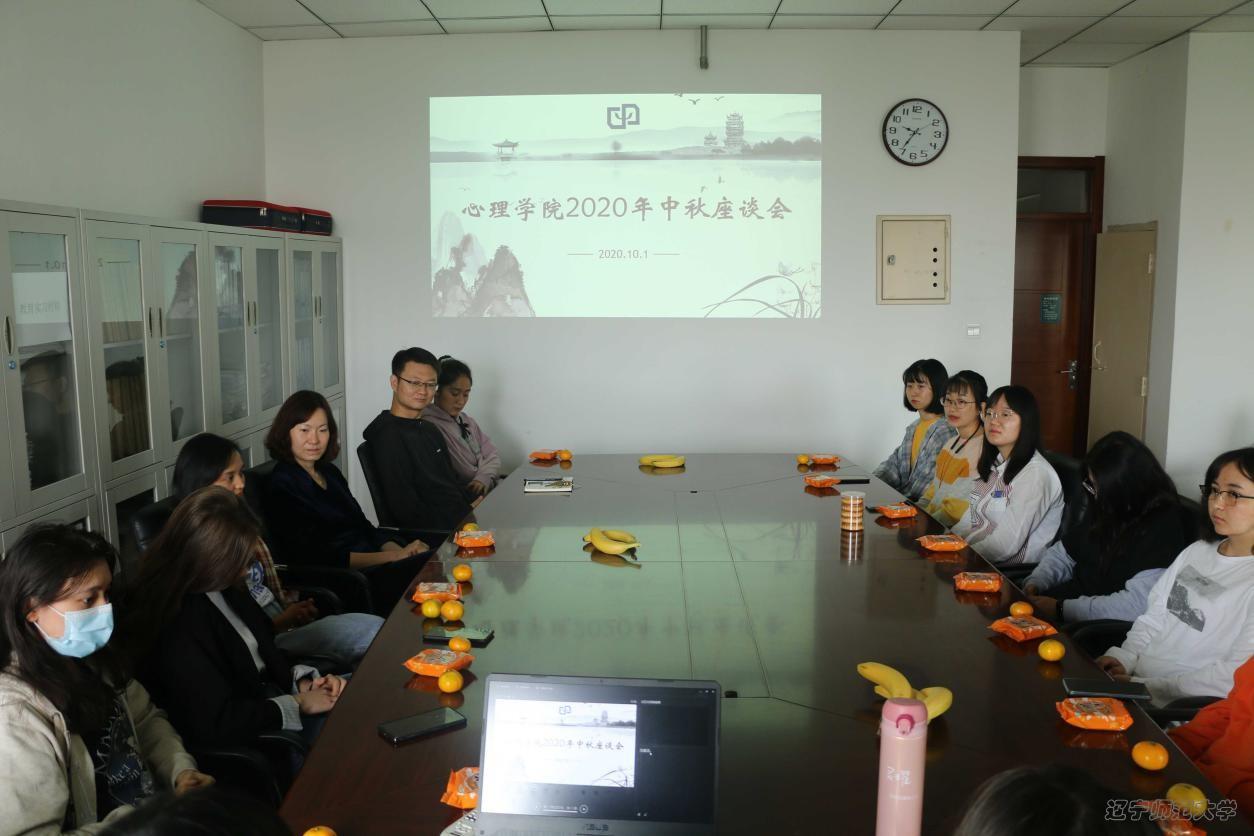 2020年10月1日上午9:00,我院于实验中心710召开2020年中秋座谈会。本次座谈会由心理学院权益维护部策划,学生会主席邹佳凝主持,党总支副书记董成文、团委书记田野、“梦想聚”少数民族同学及学生代表出席本次会议。