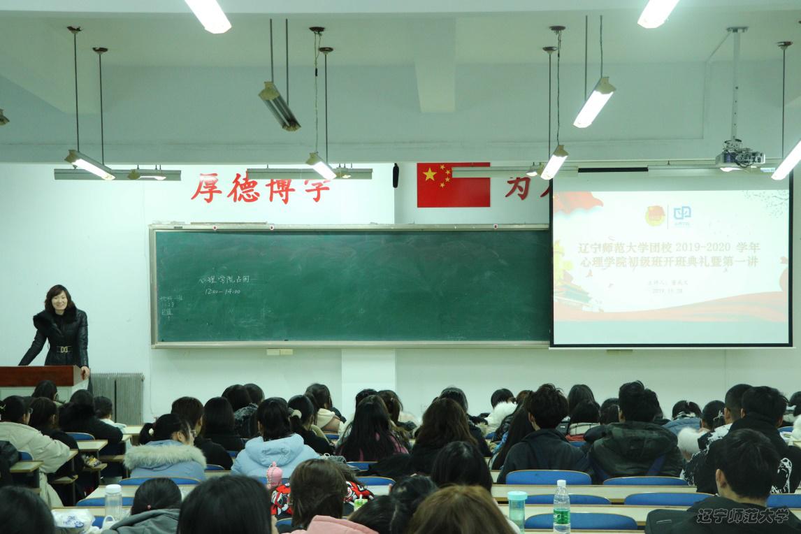 为进一步扩大充实广大团员青年的理论知识,加强学生团干部队伍建设,2019年11月28日中午12:00,我院在田家炳楼C101教室举行了辽宁师范大学团校2019-2020学年心理学院初级班开班典礼暨第一讲。本次讲座由心理学院党总支副书记董成文老师主讲,心理学院团委学生会主席团、2018级干事以及团校初级班全体成员参加本次讲座。