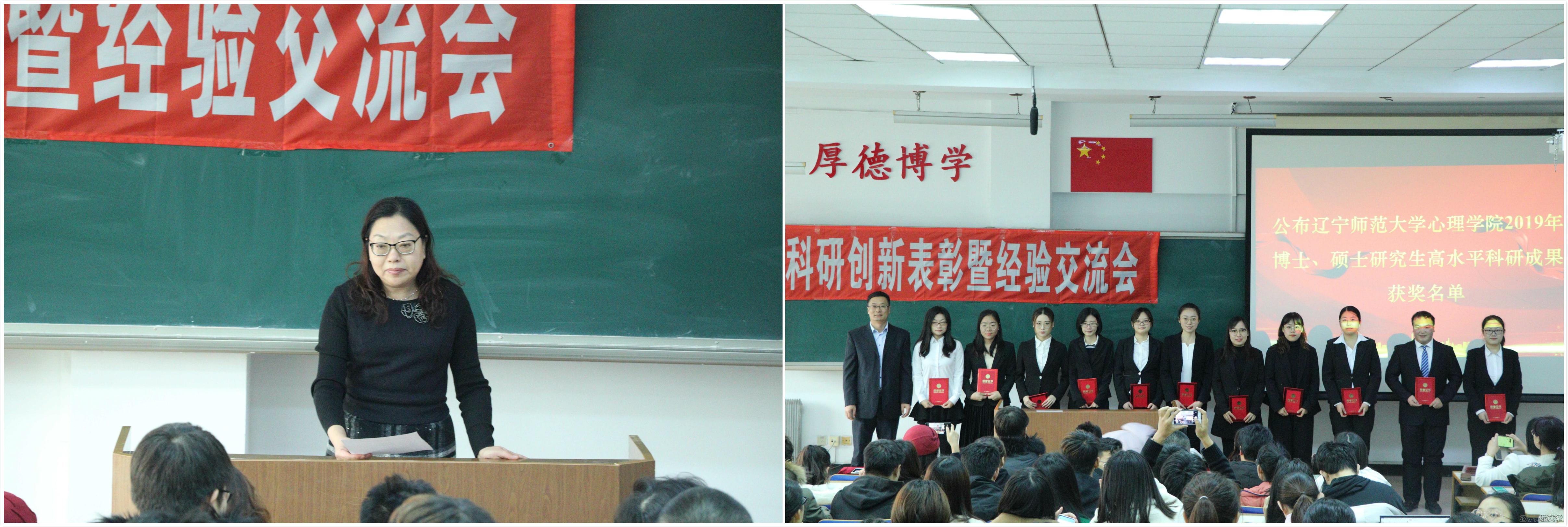 首先,党总支书记隋萍公布辽宁师范大学心理学院2019年博士、硕士研究生高水平科研成果获奖名单。胡金生院长为获奖同学颁发证书。