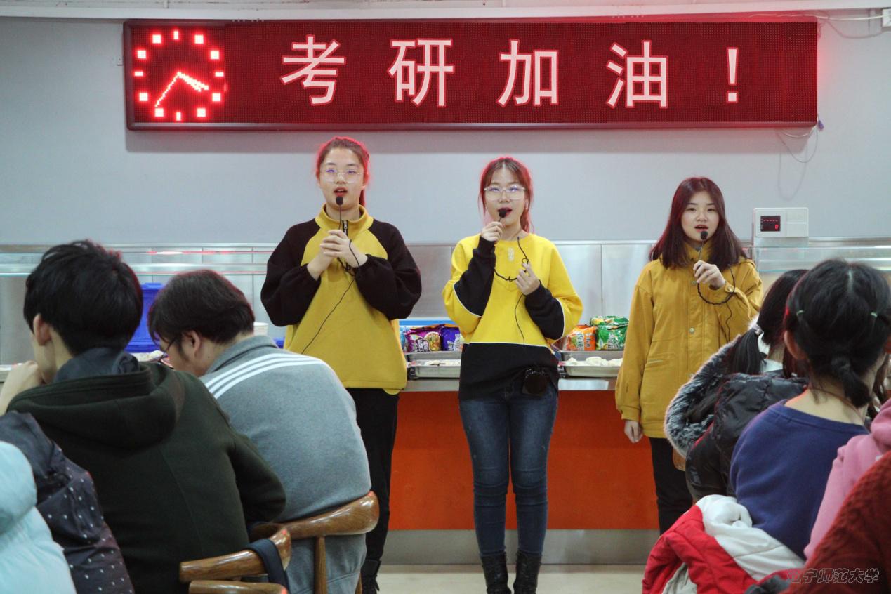 接下来,2019级本科生张迪、黄钰和黄文轩带来歌曲《启程》,她们通过歌声向考研同学传达美好祝愿,“乾坤未定,你们皆为黑马”。努力过便不后悔,愿时光不负有心人,相信每一位考研人的坚持都会创造出不一样的奇迹。