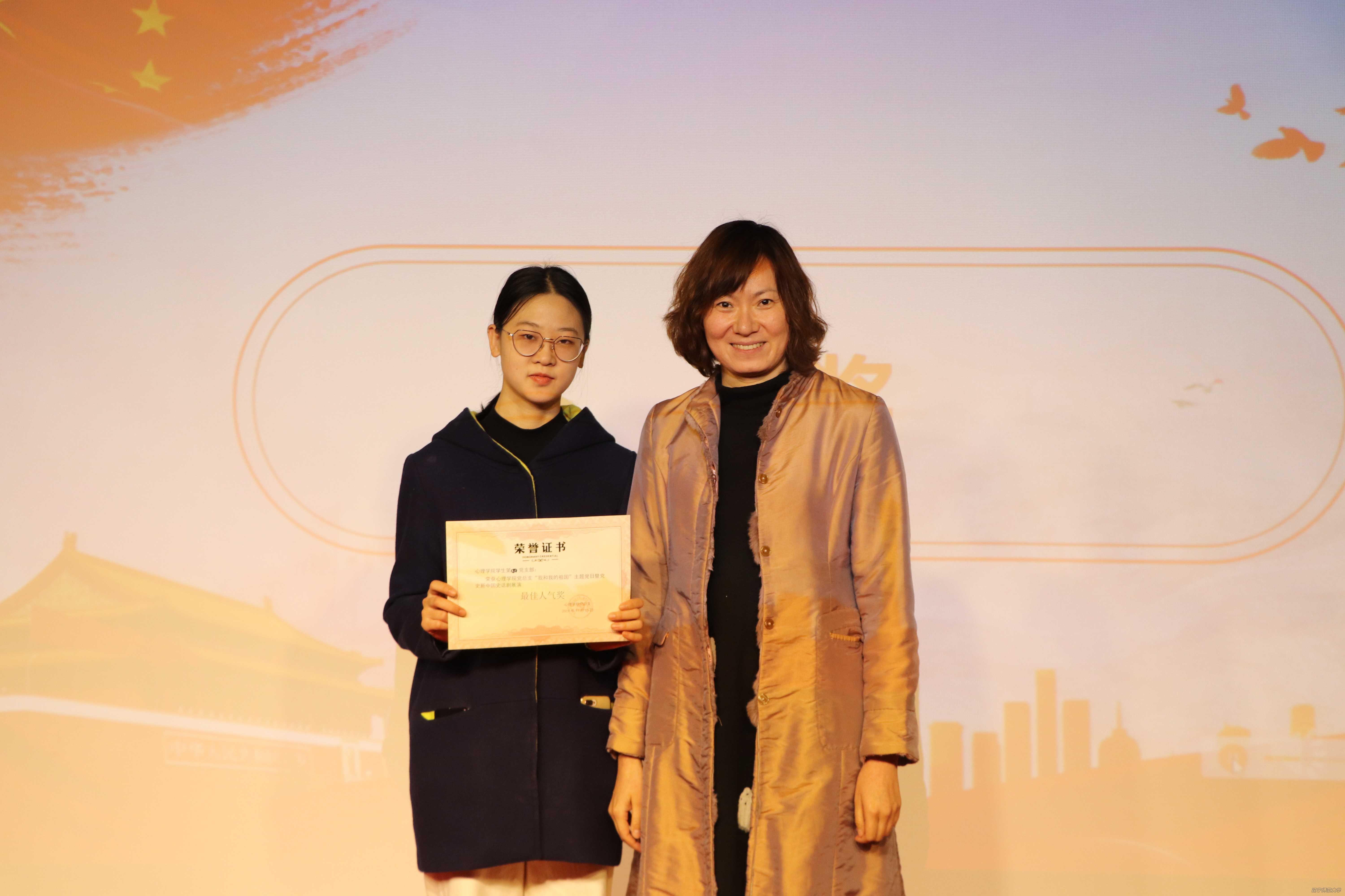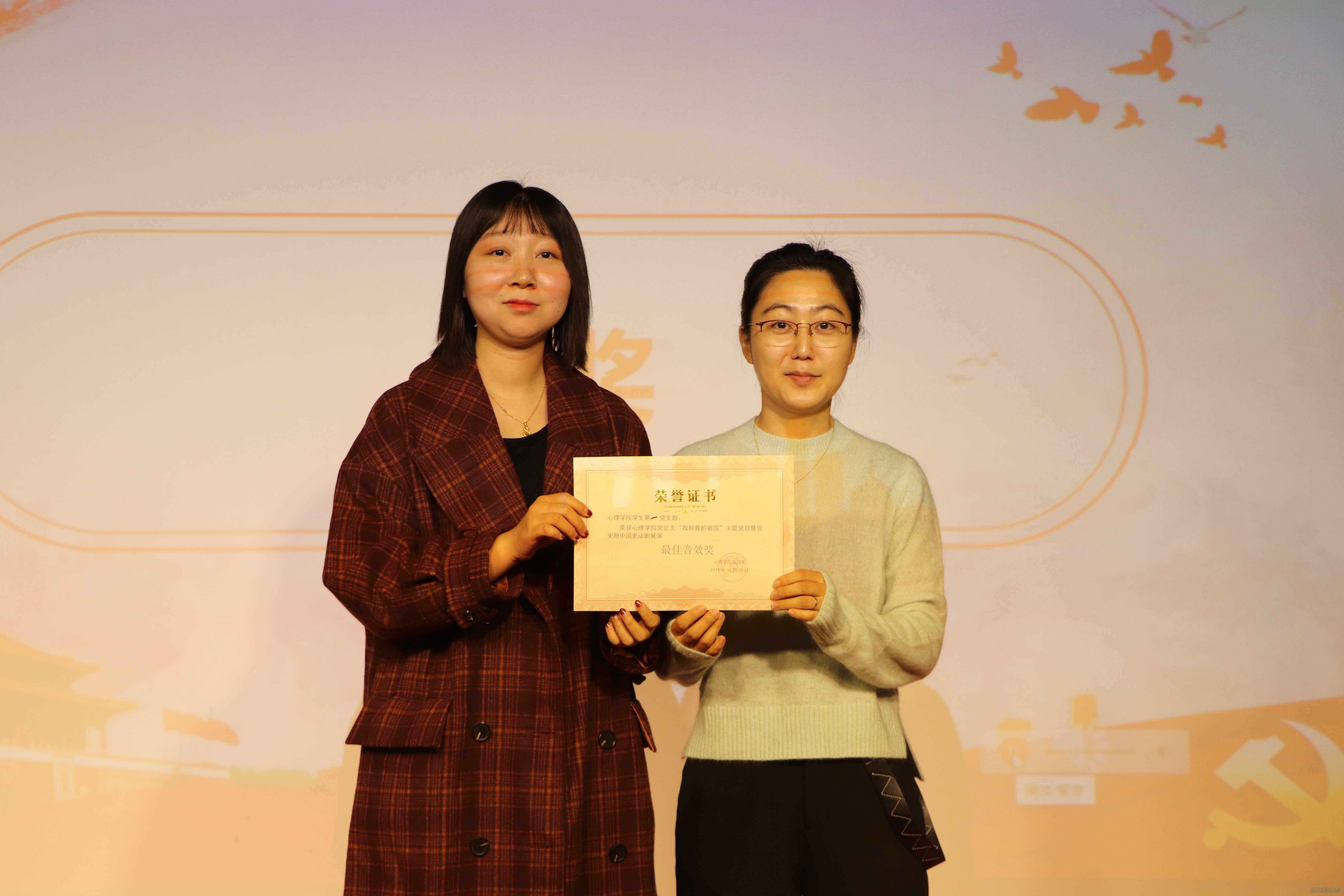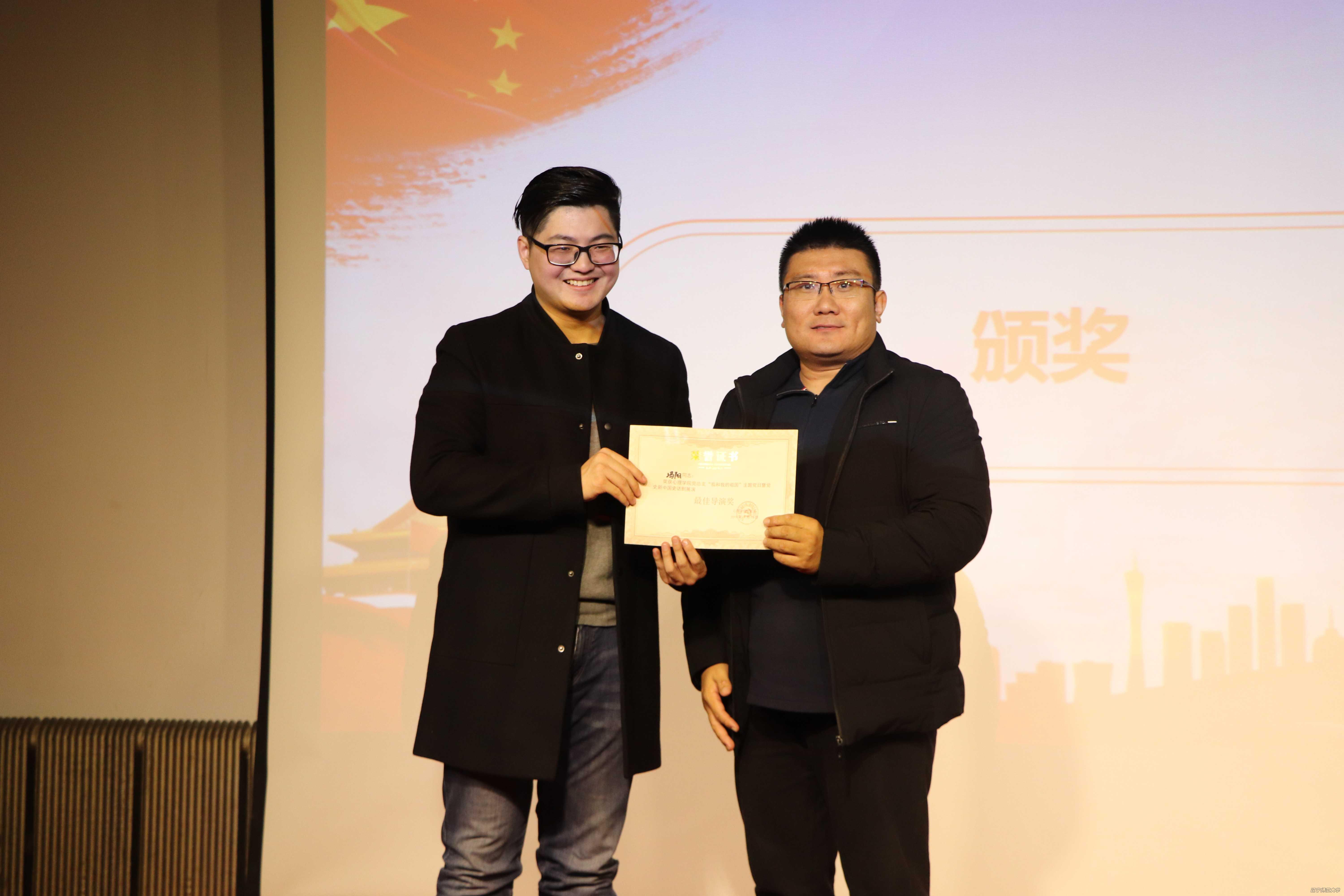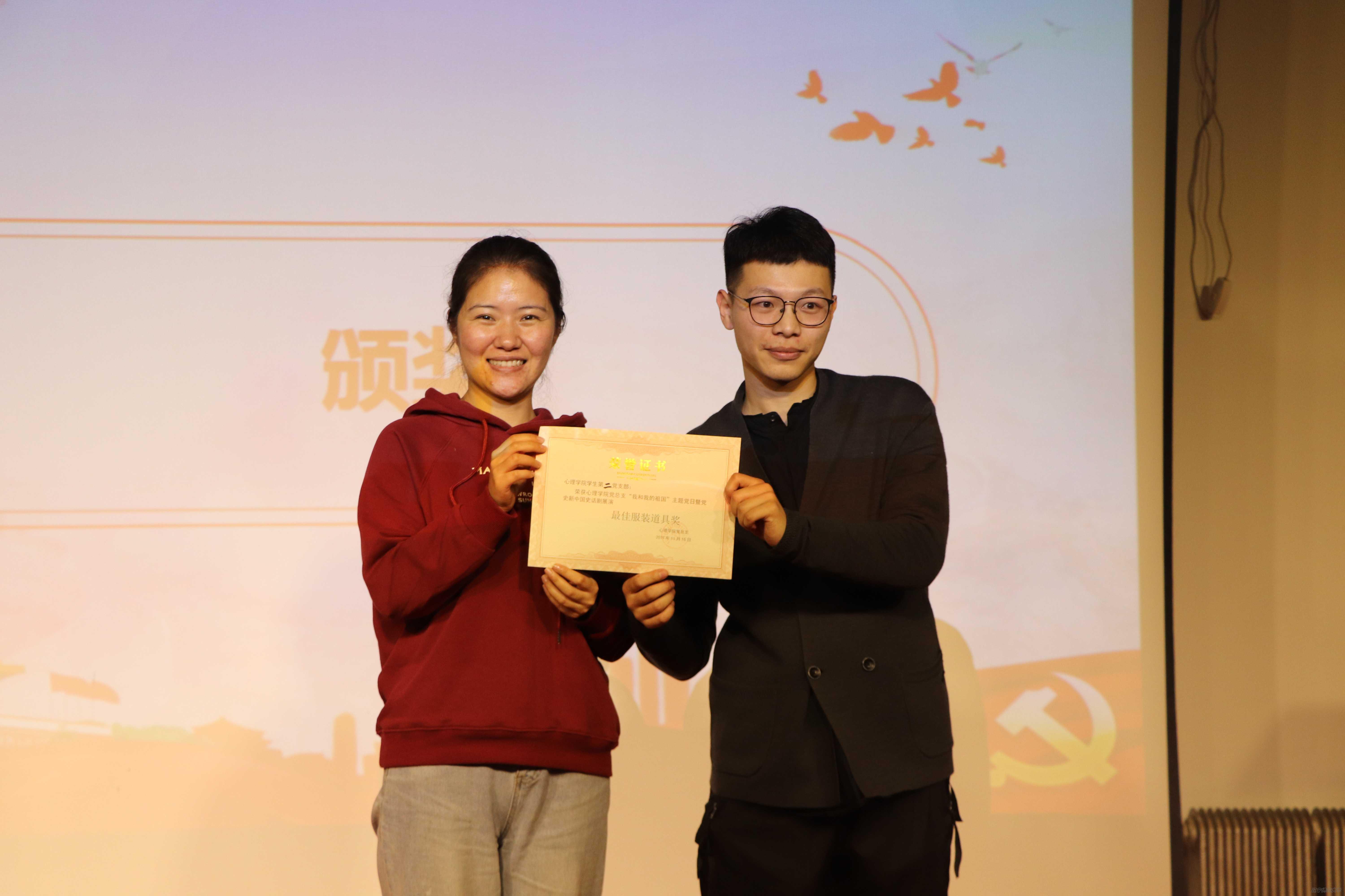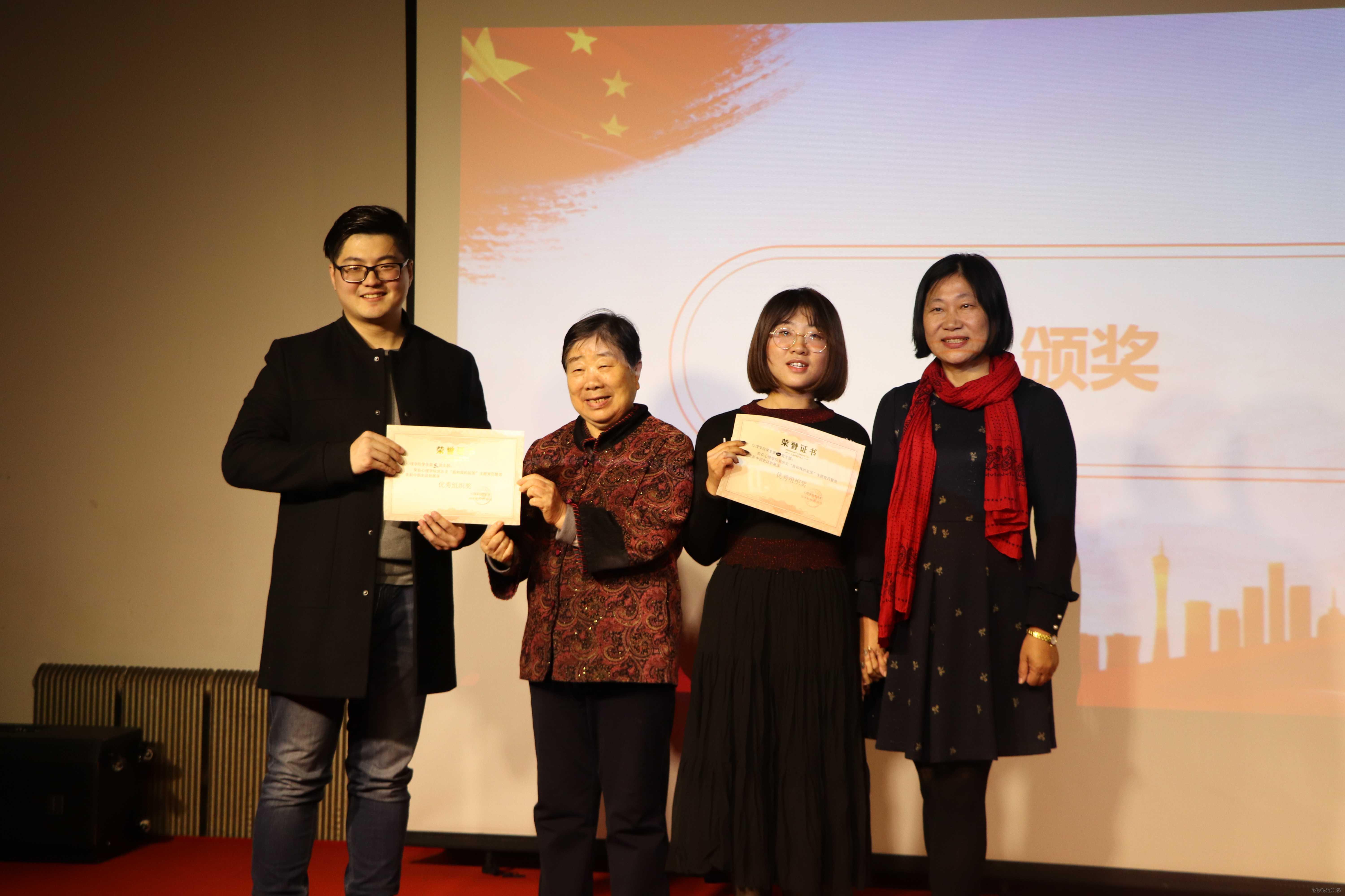 最后,主持人宣布获奖名单。最佳表演奖的获得者是心理学院学生第一党支部和心理学院学生第二党支部,最佳组织奖的获得者是心理学院学生第三党支部和心理学院学生第四党支部,最佳人气奖的获得者是心理学院学生第四党支部,最佳导演奖的获得者是心理学院学生第三党支部,最佳音效奖的获得者是心理学院学生第二党支部,最佳道具服装奖的获得者是心理学院学生第一党支部。