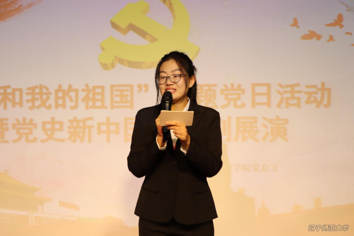 为扎实有效开展“不忘初心、牢记使命”主题教育,心理学院党总支利用“我和我的祖国”主题党日,于2019年11月15日15:30在辽宁师范大学大学生青创空间举行党史新中国史话剧展演活动。辽宁师范大学组织部鲍艳春书记和心理学院全体师生党员、预备党员参加了本次活动。心理学院2018级本科生张悠然主持本次活动。