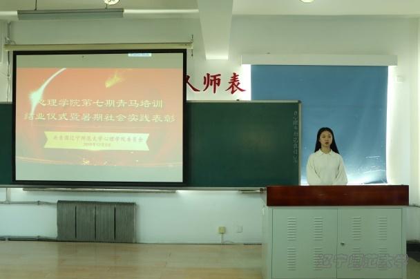 为坚持不懈地用马克思主义中国化的最新成果武装青年大学生,不断提高大学生的思想政治水平,2019年12月3日12:30,我院于田家炳楼C407教室举办心理学院第七期青马培训结业仪式暨暑期社会实践表彰大会,本次会议由心理学院团委宣传部干事李昕主持,心理学院青马初级班全体成员及社会实践获奖同学参会,团委书记田野老师出席本次大会。