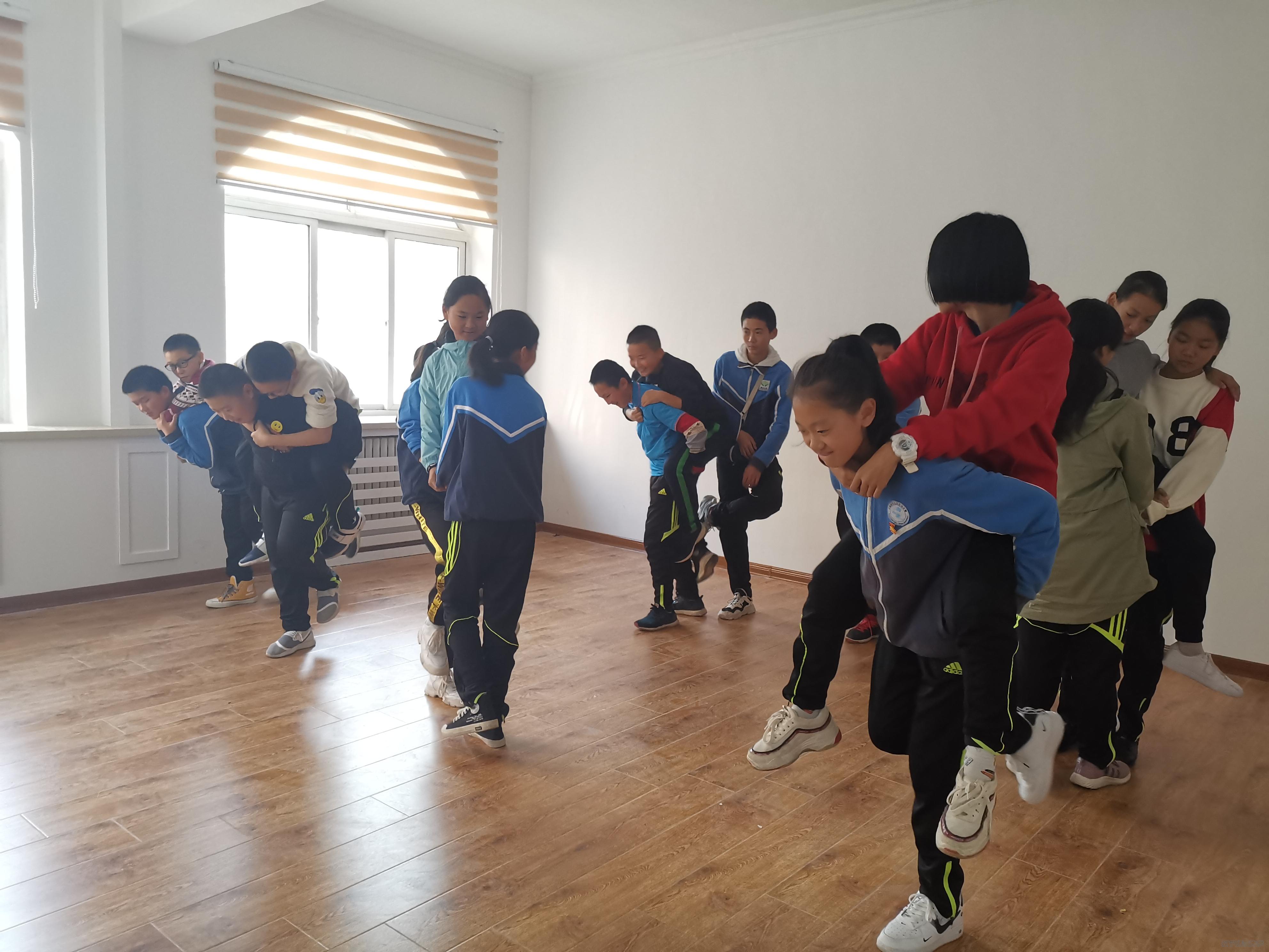 团训第一个项目是“眉目传情”,希望学生在活动中感受到肢体语言的魅力,了解人际交往中肢体和语言表达的重要性,促进同学间和谐友善地交往。随后,为了让学生们体验到团队的力量,了解团队合作的重要性,教练将一个班级的学生分成两队进行团队组建和团队展示,并围绕“新时代,好少年”的主题进行了精彩展示。最后,为了增强团队的凝聚力,教练让学生体验第三个项目“怪兽”,即每队队员按照一定的要求共同组成一个动物模型。在队员积极讨论和团结合作的基础上,每支队伍按时地组建好了各自的动物模型。