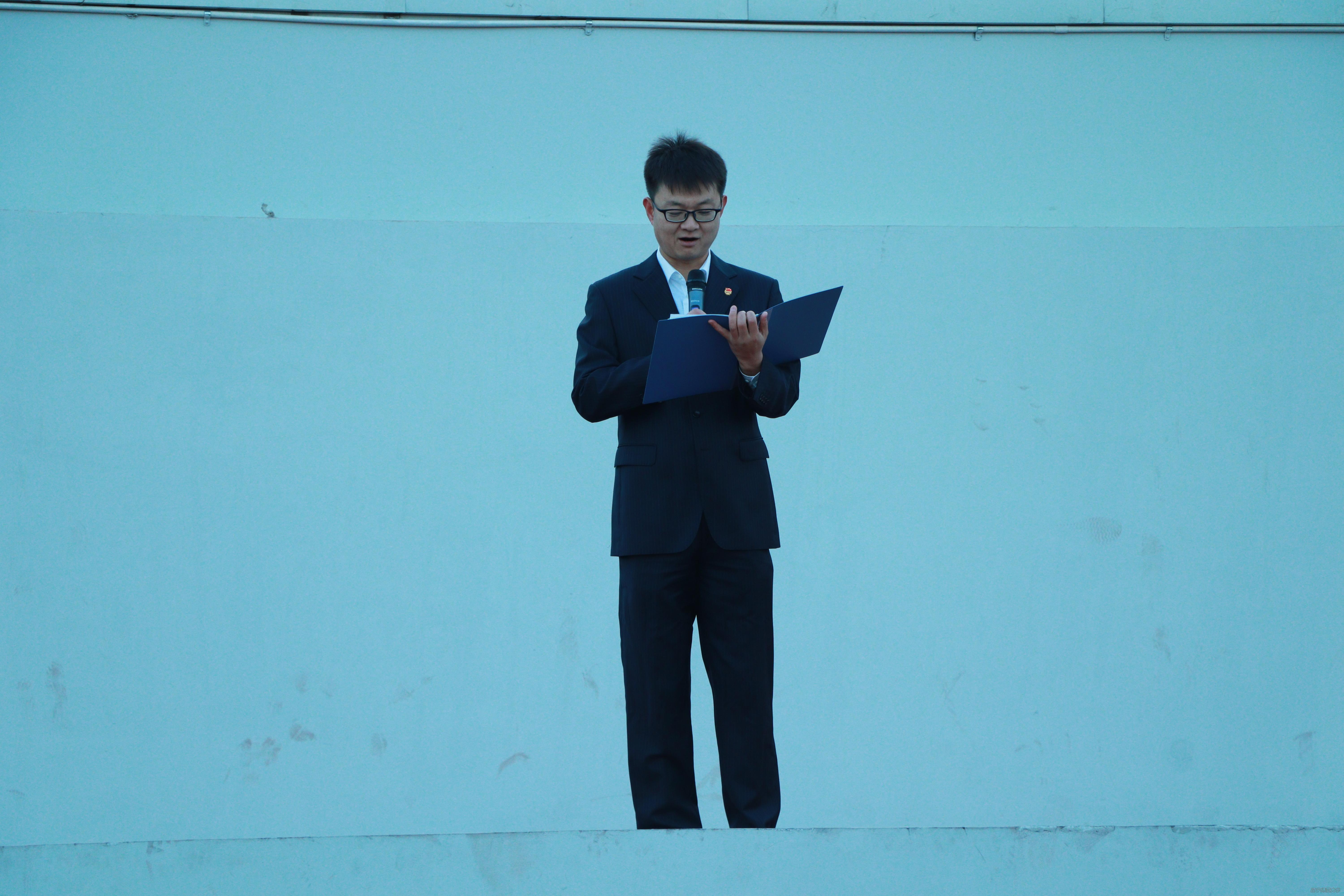 仪式进行第四项,田野老师做国旗下讲话。他说,我们的时代是变革的时代,人民日益增长的美好生活需要将大众的目光聚焦在心理健康问题上,相信心理学子定会顺应时代号召,发扬时代精神,为提高国民幸福指数奉献己力。