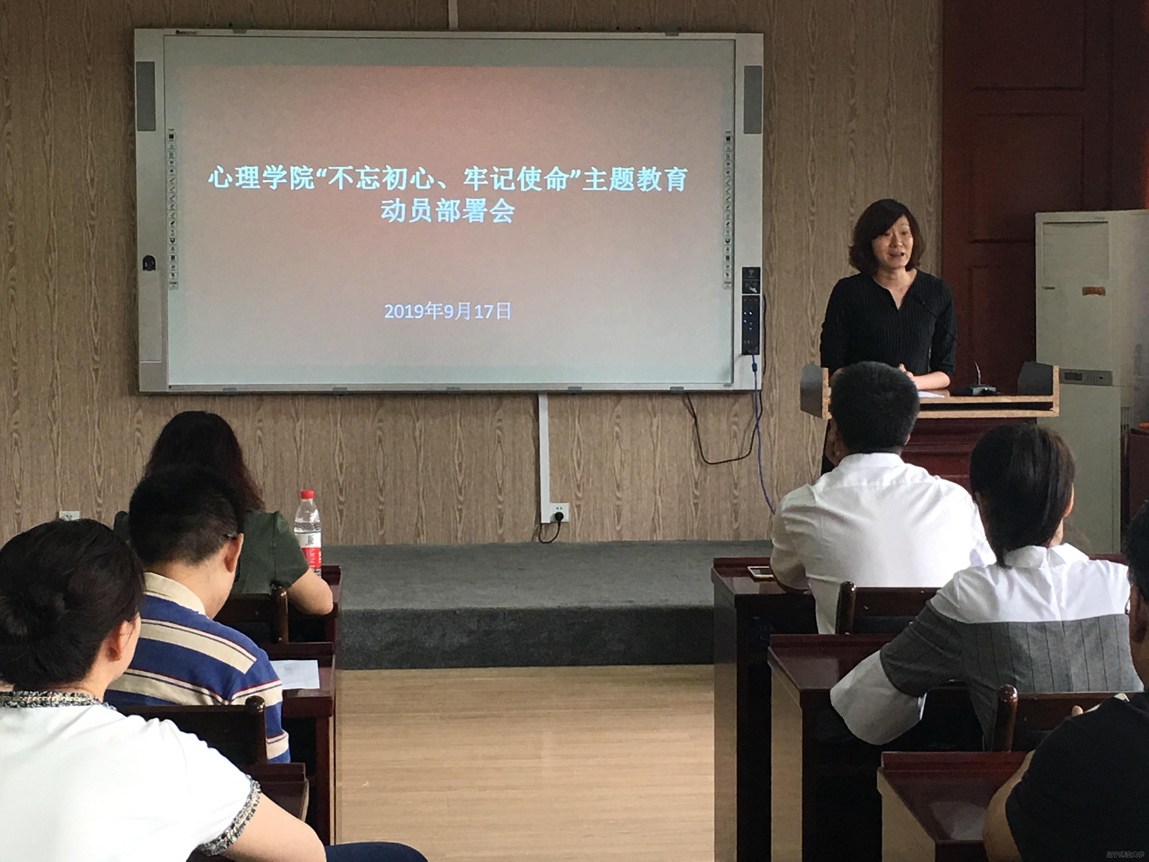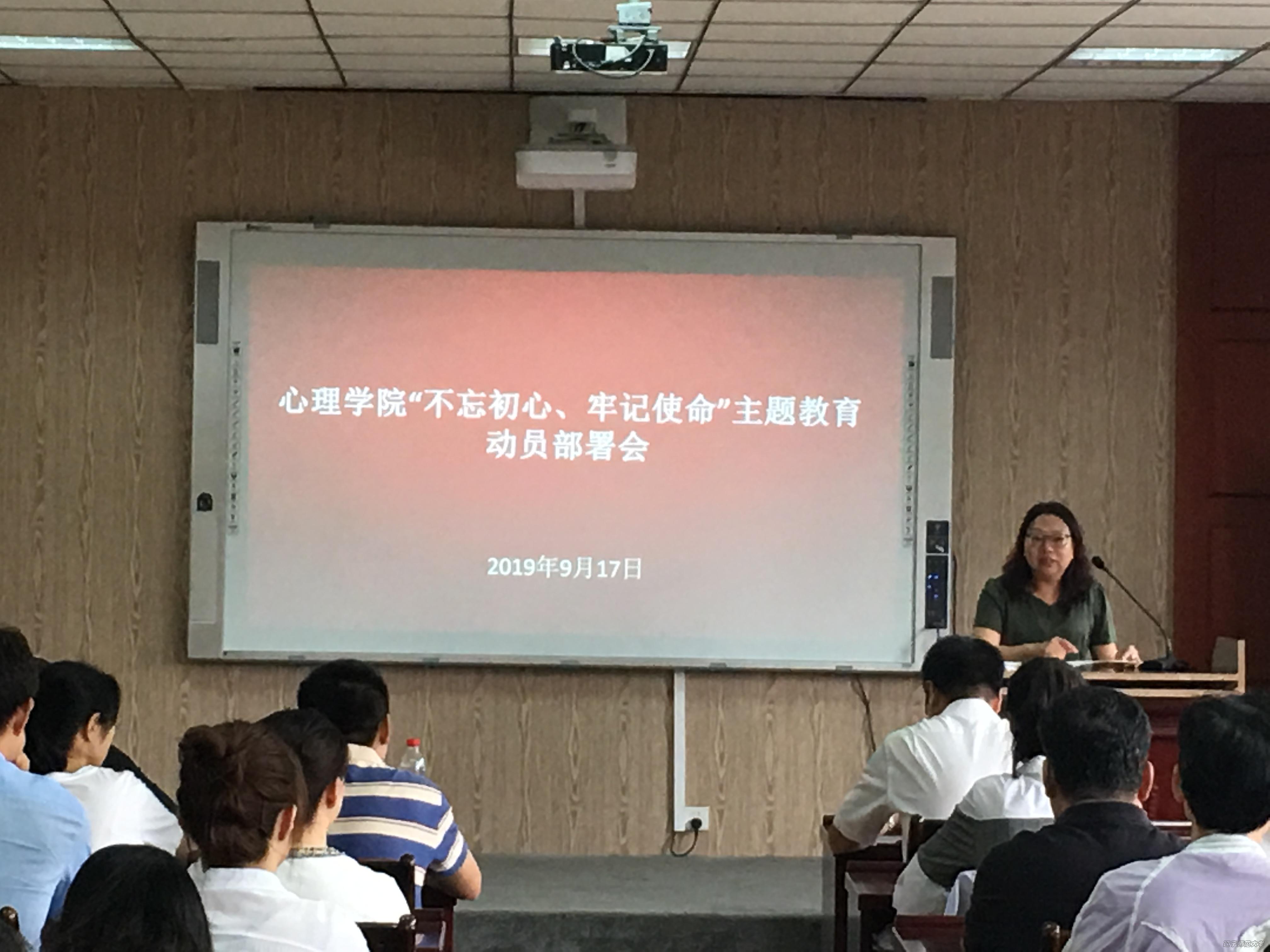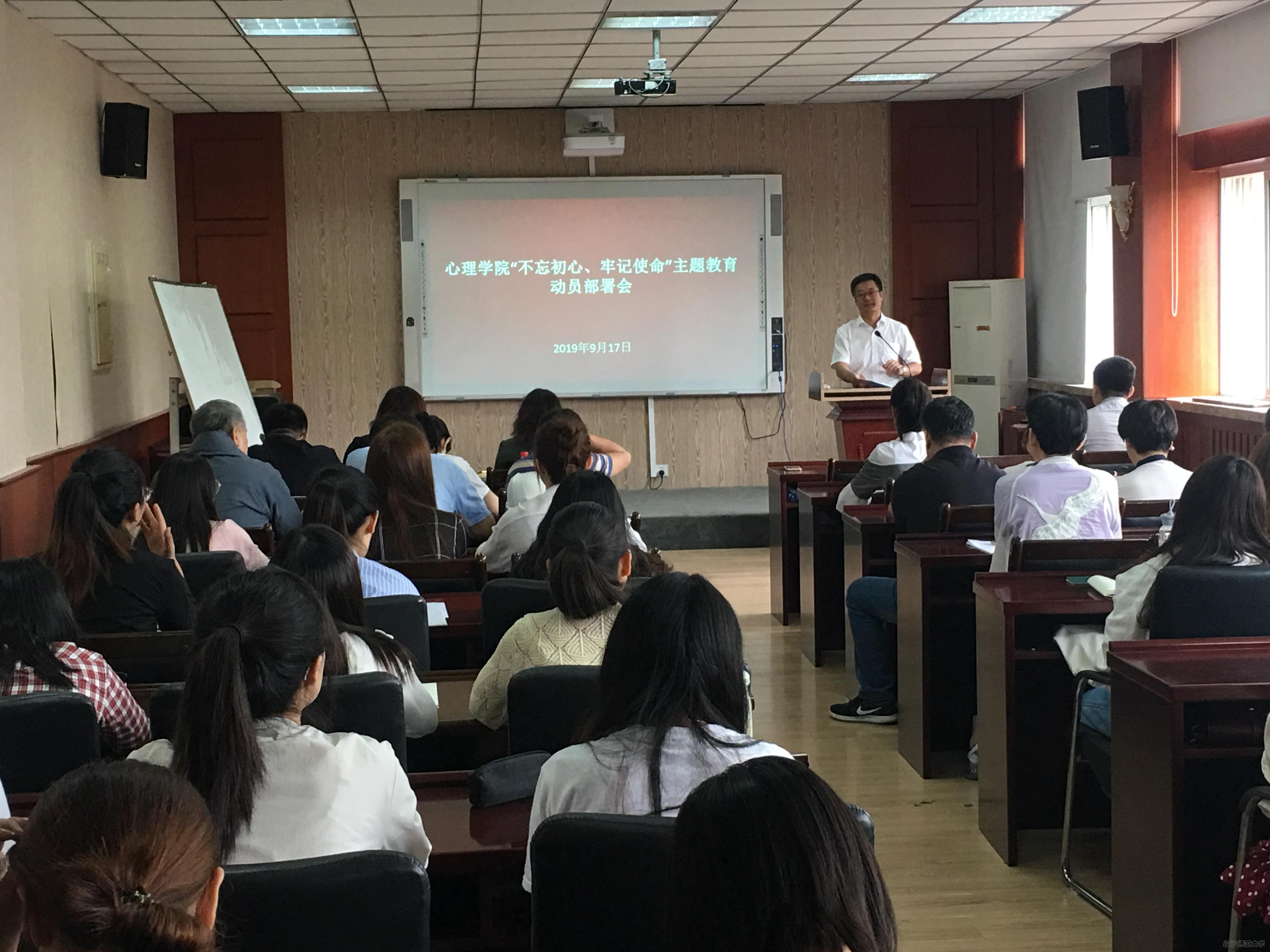 2019年9月17日上午,我院于实验中心402召开“不忘初心、牢记使命”主题教育动员部署会。心理学院全体师生党员参加会议,院长胡金生主持会议。