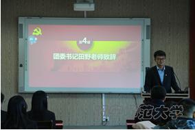 其后,田野老师对本次成立仪式致贺词。他提出,党务中心刚刚成立,其后的发展道路需要大家进一步探索。他强调各部门要进一步磨合,使之齐头并进、共同发展。除此之外,田老师也对大家为心理学院党务工作做出的贡献表达了感谢。