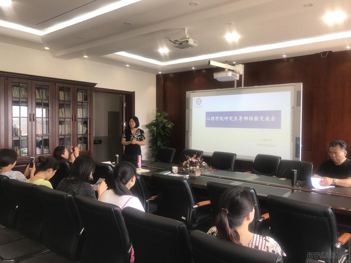 2019年7月24日上午9:00,辽宁师范大学心理学院在实验中心8楼会议室举行研究生和本科生培养经验交流会,特邀请张奇教授/博士生导师为各位青年导师交流分享经验。会议由分管研究生教育工作的刘文院长主持。党总支书记隋萍书记、董成文副书记、孙岩副院长和青年硕士生导师参加本次经验交流会。