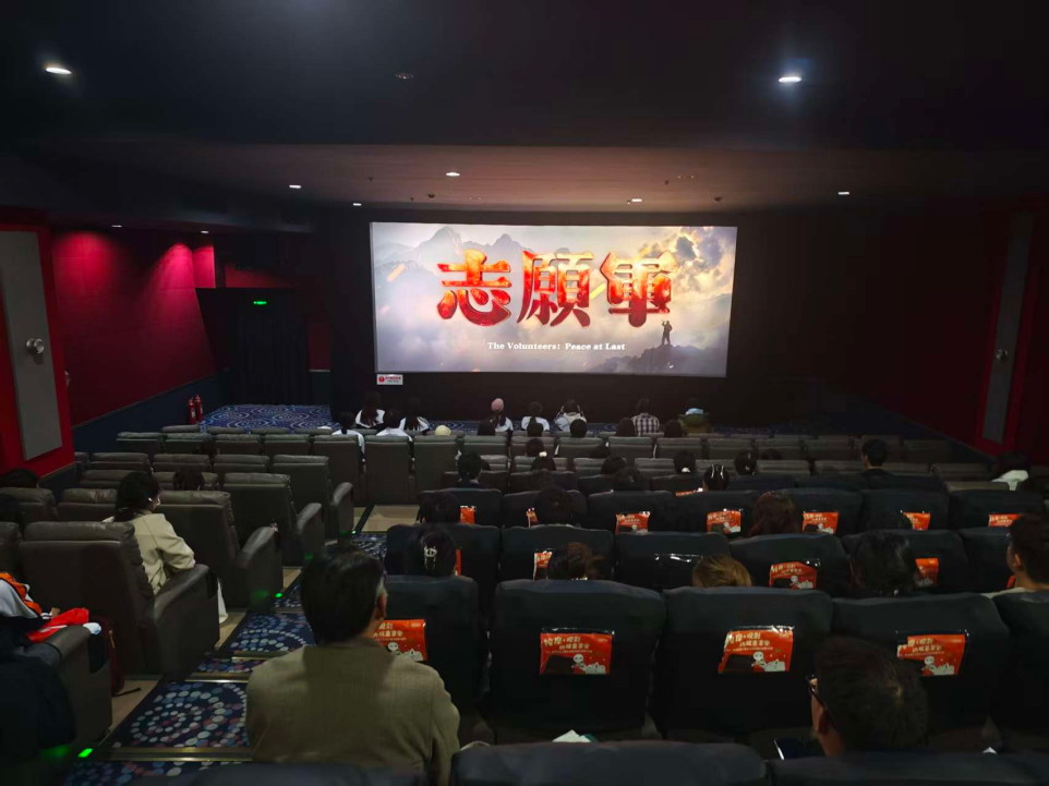 观影过程中,师生们神情专注,当看到松骨峰阵地上志愿军战士在烈火中与敌人殊死搏斗、用血肉之躯阻挡敌军钢铁洪流的震撼场景时,现场响起阵阵压抑的抽泣声;当银幕上再现黄继光奋不顾身、用胸膛堵住敌人枪眼的英雄壮举时,整个放映厅肃然无声,无数师生被这舍生取义的伟大瞬间震撼得热泪盈眶;当看到我国代表在联合国会场义正词严捍卫新中国尊严时,全场又涌动着振奋与自豪的情绪。影片中志愿军将士舍生忘死的英雄气概和保卫和平的坚定信念,让在场每个人都深受震撼,不少师生在观影结束后仍红着眼眶,沉浸在那段可歌可泣的英雄史诗中。