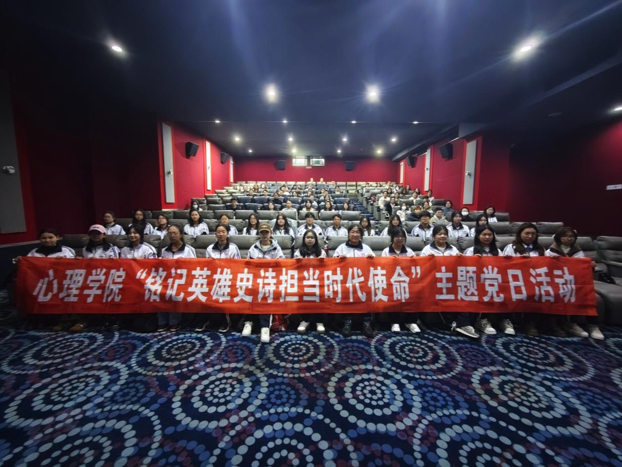 为贯彻落实《教育部办公厅等七部门关于开展全国高校“立报国强国大志向 做挺膺担当奋斗者”宣传教育的通知》精神,深化实施青春赓续红色血脉工程,心理学院党委于10月24日组织开展了“铭记英雄史诗 担当时代使命”主题党日活动。时值中国人民志愿军抗美援朝出国作战75周年,本次活动组织师生党员和入党积极分子集体观看了红色影片《志愿军:浴血和平》,旨在缅怀革命先烈,传承抗美援朝伟大精神,激励师生将爱国之情转化为挺膺担当的实际行动。