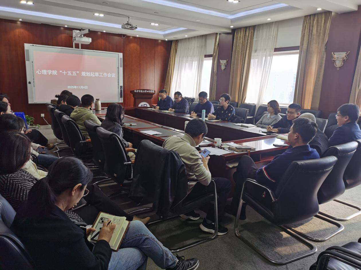 为深入贯彻国家“十五五”规划战略部署,落实学校“十五五”事业发展规划编制工作方案,科学谋划学院未来五年发展路径,11月5日心理学院召开“十五五”规划起草工作会议,围绕党建工作、学科建设、人才培养、科研创新等关键领域建言献策,凝聚发展共识。学院党政领导班子、教授、博导、系主任及实验室主任等核心骨干参会,院长胡金生主持会议。