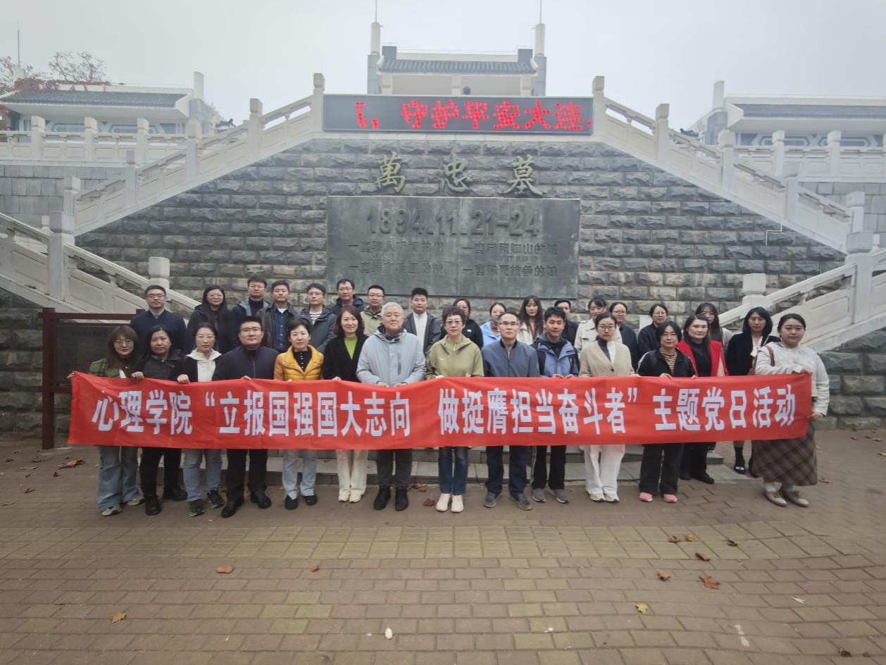 为贯彻落实《教育部办公厅等七部门关于开展全国高校“立报国强国大志向 做挺膺担当奋斗者”宣传教育的通知》精神,深化实施青春赓续红色血脉工程,在国家公祭日即将到来之际,11月7日,心理学院党委组织党员师生赴旅顺万忠墓纪念馆开展“立报国强国大志向 做挺膺担当奋斗者”主题党日活动。